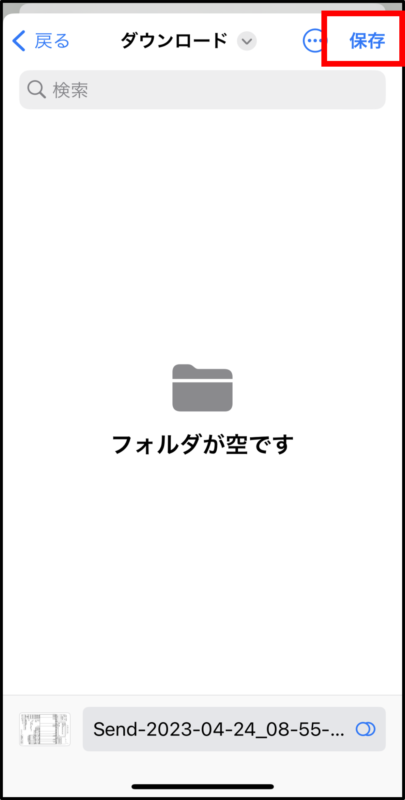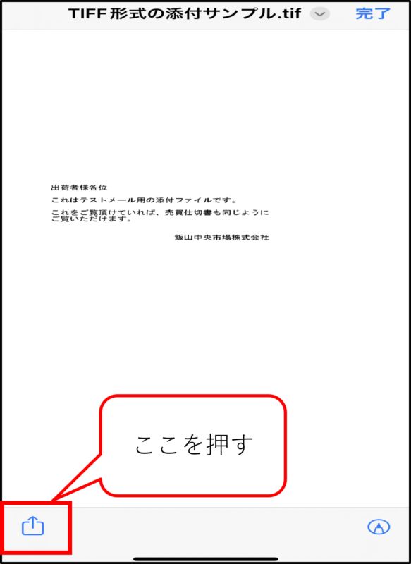 ①メール受信画面に戻り、添付ファイルを見るを押す