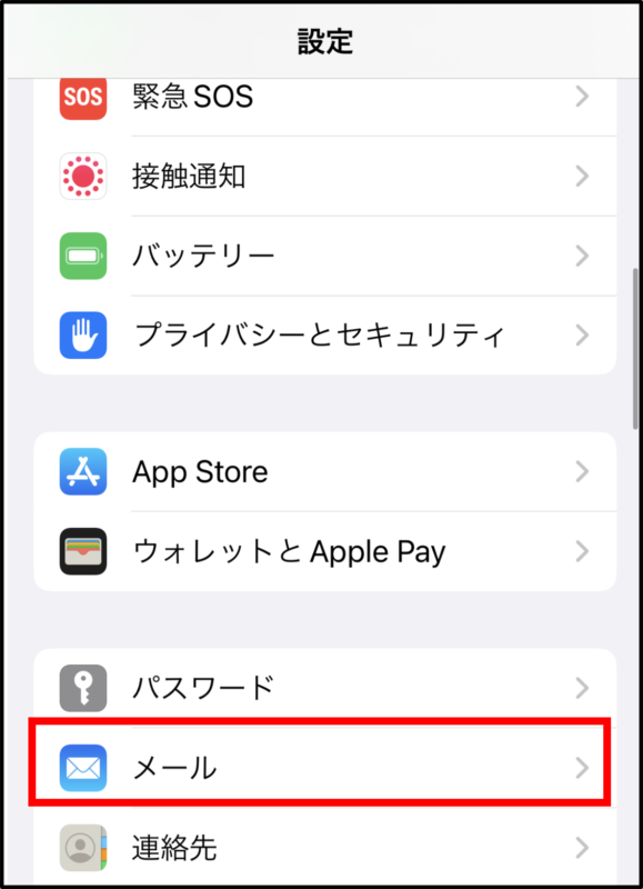 ①iPhoneのアプリ一覧画面に戻り、メールを探し押す