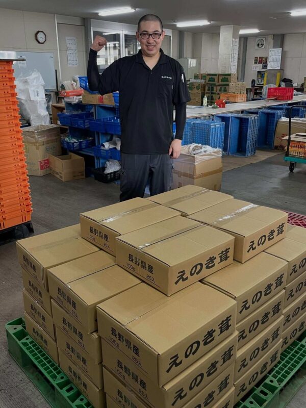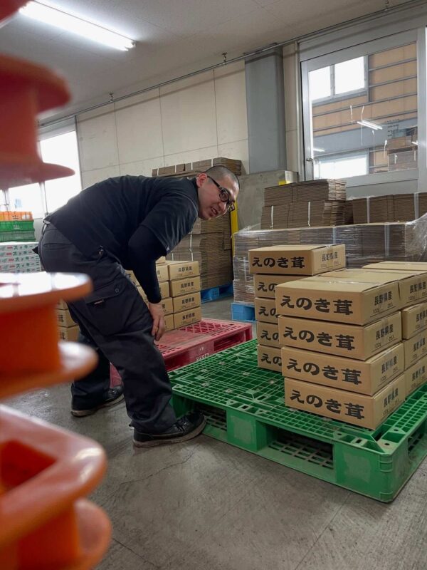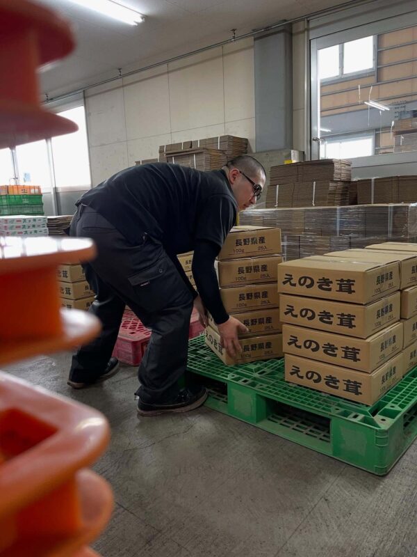 #こっそり佐藤さんシリーズ (今回はガッツリ😊) そして配送センターのエース 佐藤さん! きのこの箱詰め後、整理整頓をしていました🍄📦